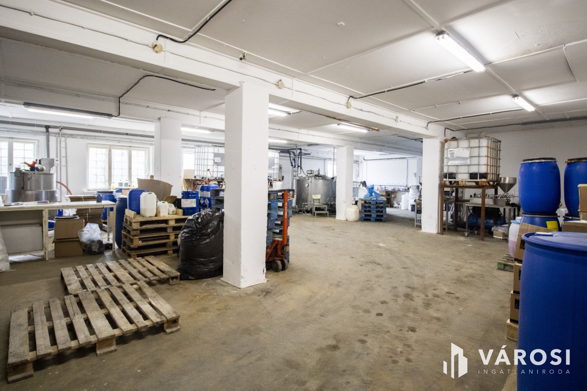 A földszinten található, összesen 295 négyzetméteres üzemépület jelenleg csomagolóüzemként funkcionál, amely azonnal alkalmas működtetésre. Az üzemi tér 158 négyzetméteres, ehhez kapcsolódik egy 84 négyzetméteres raktár, valamint plusz öltöző, iroda, tárgyaló-előtér és mellékhelyiség. Az ingatlan zárható garázzsal és elkülönített udvarrésszel is rendelkezik, amely biztosítja a zavartalan munkavégzést.