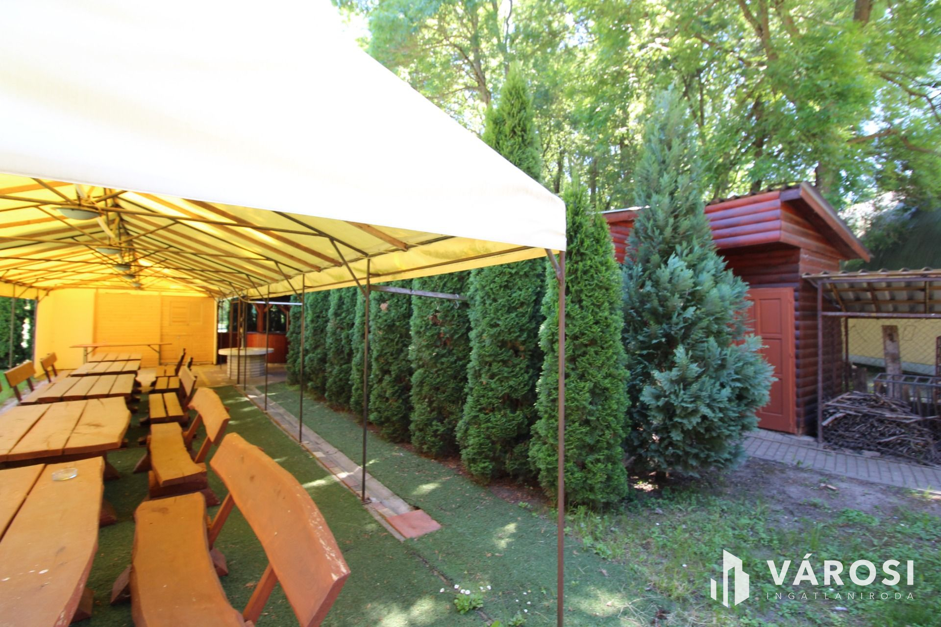 - Fedett kiülős rész, kinti bárral, bográcsozási és sütögetési lehetőséggel