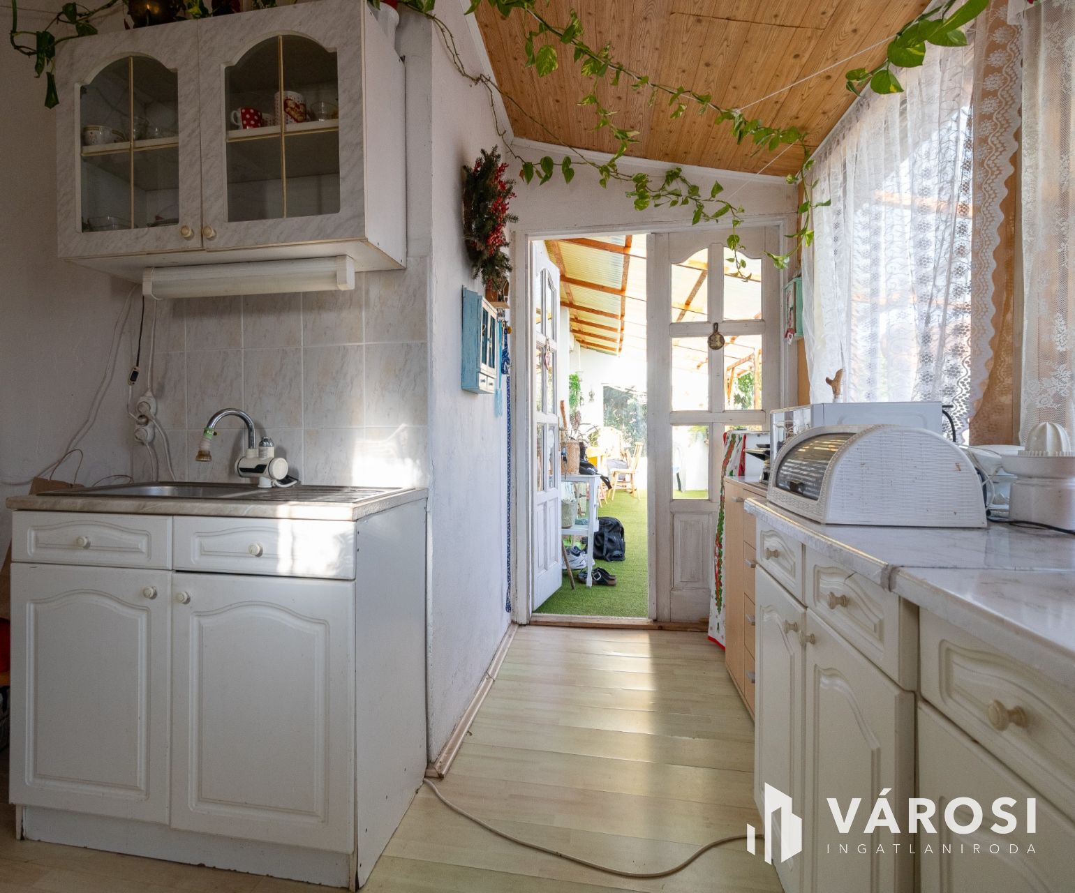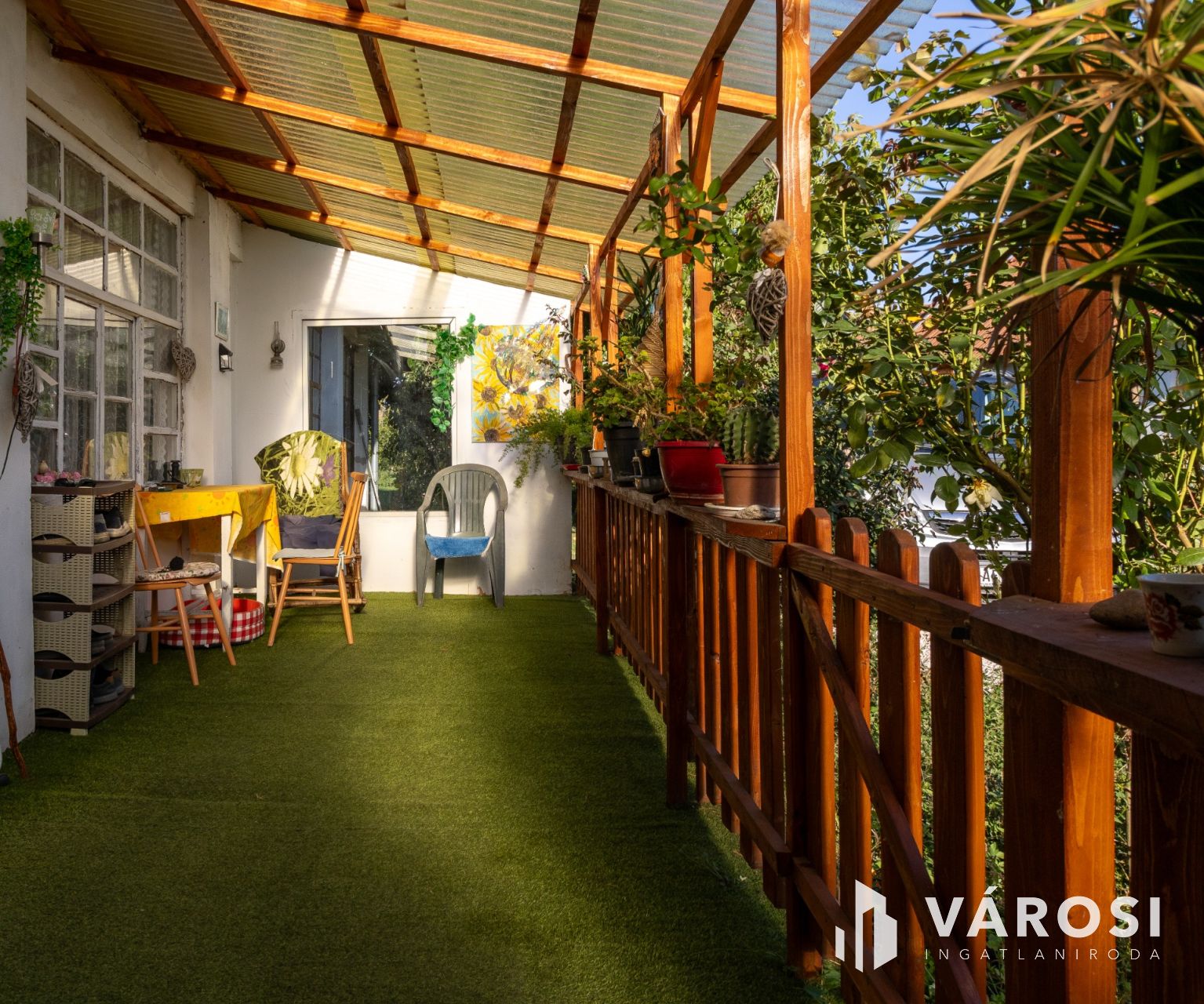 A házhoz tartozik egy terasz, ideális helyszín a reggeli kávézásra vagy a baráti összejövetelekre. Az udvaron több gépjármű beállására is van lehetőség, valamint a telek méretéből adódóan garázs is kialakítható. A fúrt kút praktikus megoldásként szolgálhat a kert gondozásához.