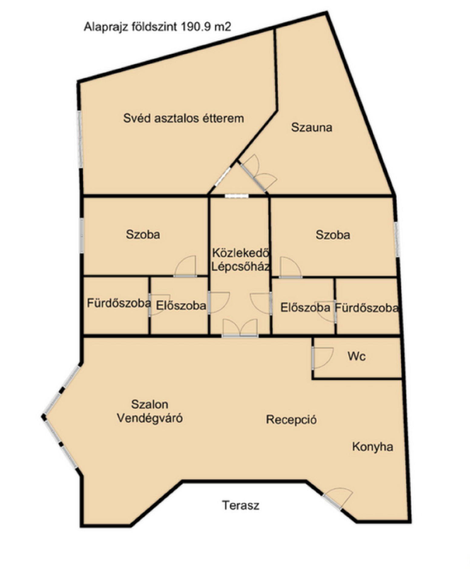 Tartozik még hozzá egy hatalmas vendégváró nappali recepcióval, egy svédasztalos kialakítású étterem, illetve egy hatalmas külső terasz. Szintén a hotel részét képezi egy mini wellness részleg és egy saját tároló is.