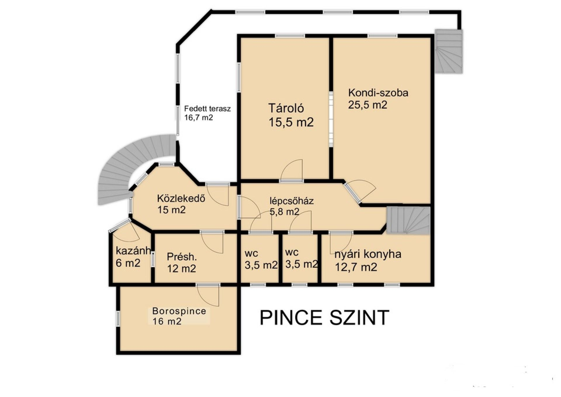 -pince szintjén, borospince, vizes blokk , konyha,  két nagyobb helyiség is található amely több célra is alkalmas. (kondiszoba, műhely, játszó szoba..stb) - lakássá alakítható!