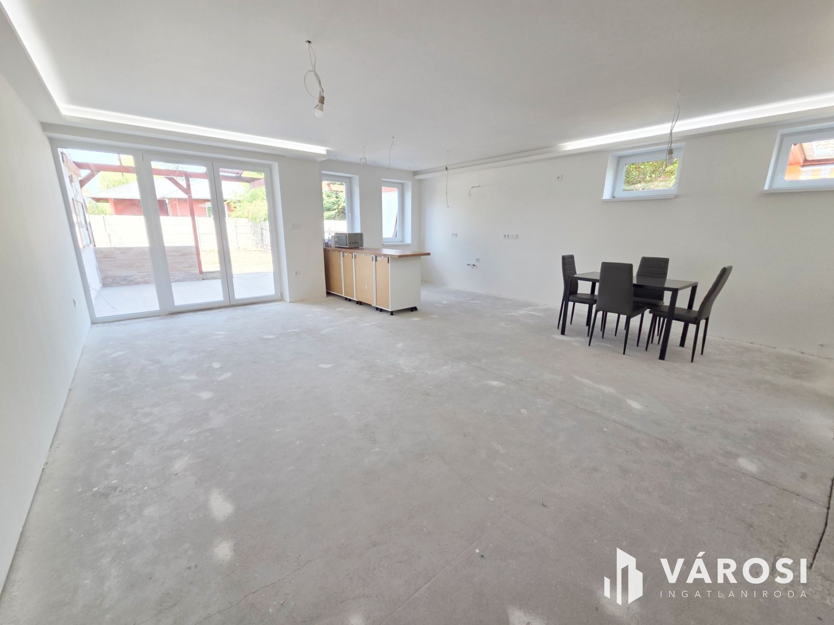 - Földszint: Tágas Amerikai-konyhás nappali (48 m2), kamra, fürdő, előszoba, közlekedő, garázs, terasz