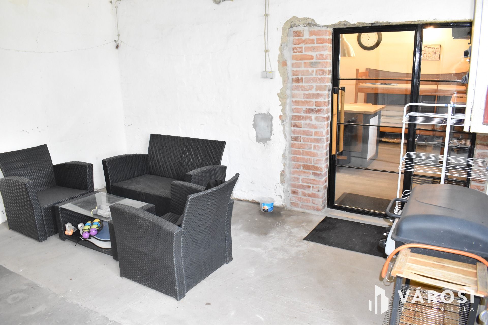 Néhai rakodó-rámpa, a hozzá tartozó tetővel átépítésre került, így hangulatos fedett terasszá vált (tűzifa tárolóval).