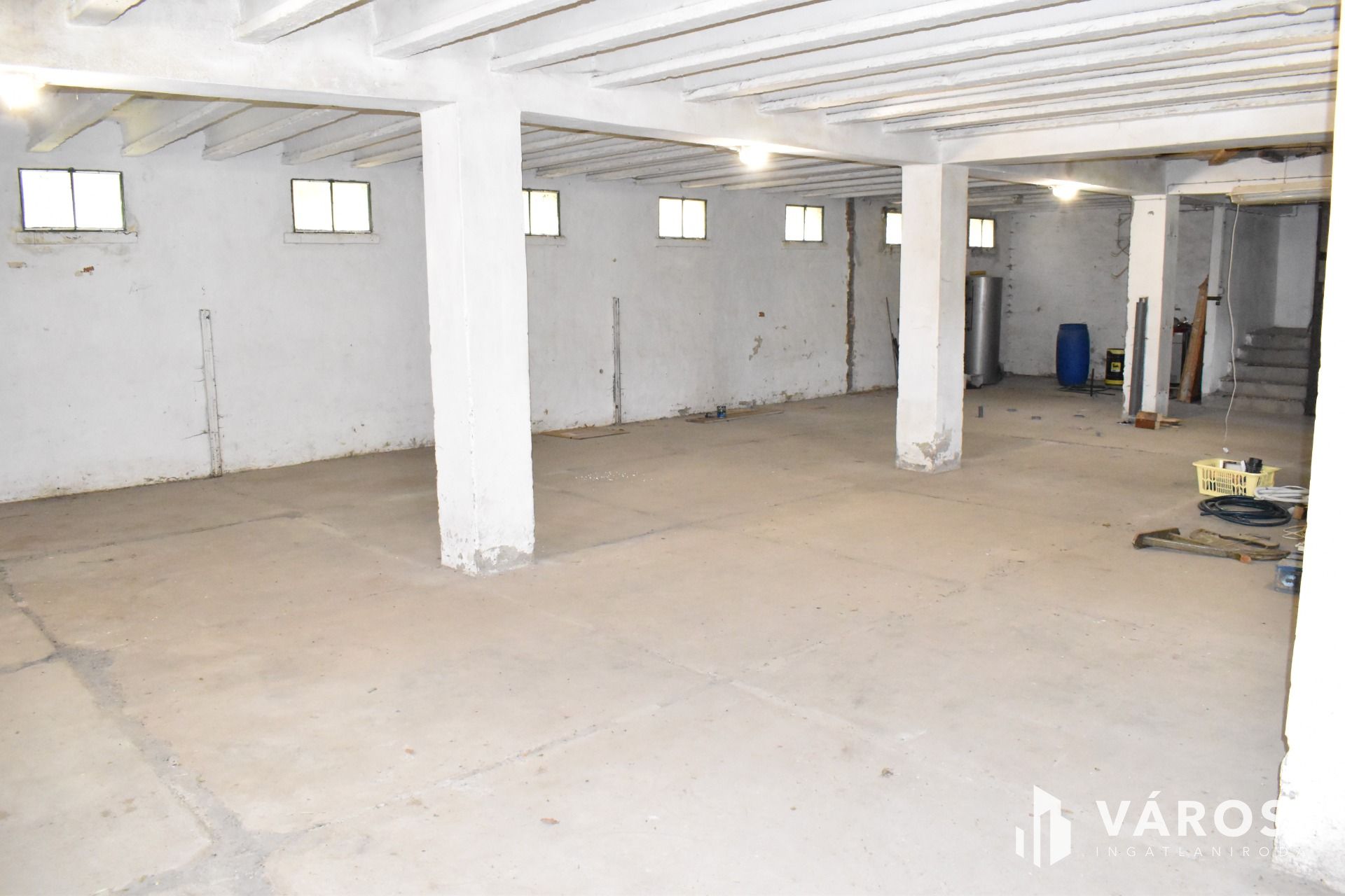 The building on the property was constructed in the 1960s, is structurally impeccable, with brick walls and a reinforced concrete frame. The building previously operated as a grain storage and drying facility. Thanks to its owner, continuous improvements have been made in recent years, including replacement of the water pipes, the entire electrical network, and the installation of 'industrial electricity' (3x50A), which currently operates at residential rates. It is suitable for the installation of a solar panel system. The main building’s roof has been renovated, and mains drinking water has been connected. On the ground floor, a cozy studio apartment (with kitchen, bathroom, and toilet) has been created. Heating is provided by wood-burning, air conditioning with heating/cooling function, and other electric heating options. Spaces for a washing machine, dishwasher, extractor fan, refrigerator, TV, and audio equipment have been set up; hot water is provided by an electric boiler. For goods loading, a large gate has been structurally prepared, with supporting pillars and a lintel. Additionally, foundations and sewage piping have been prepared for a few ‘wet’ rooms.