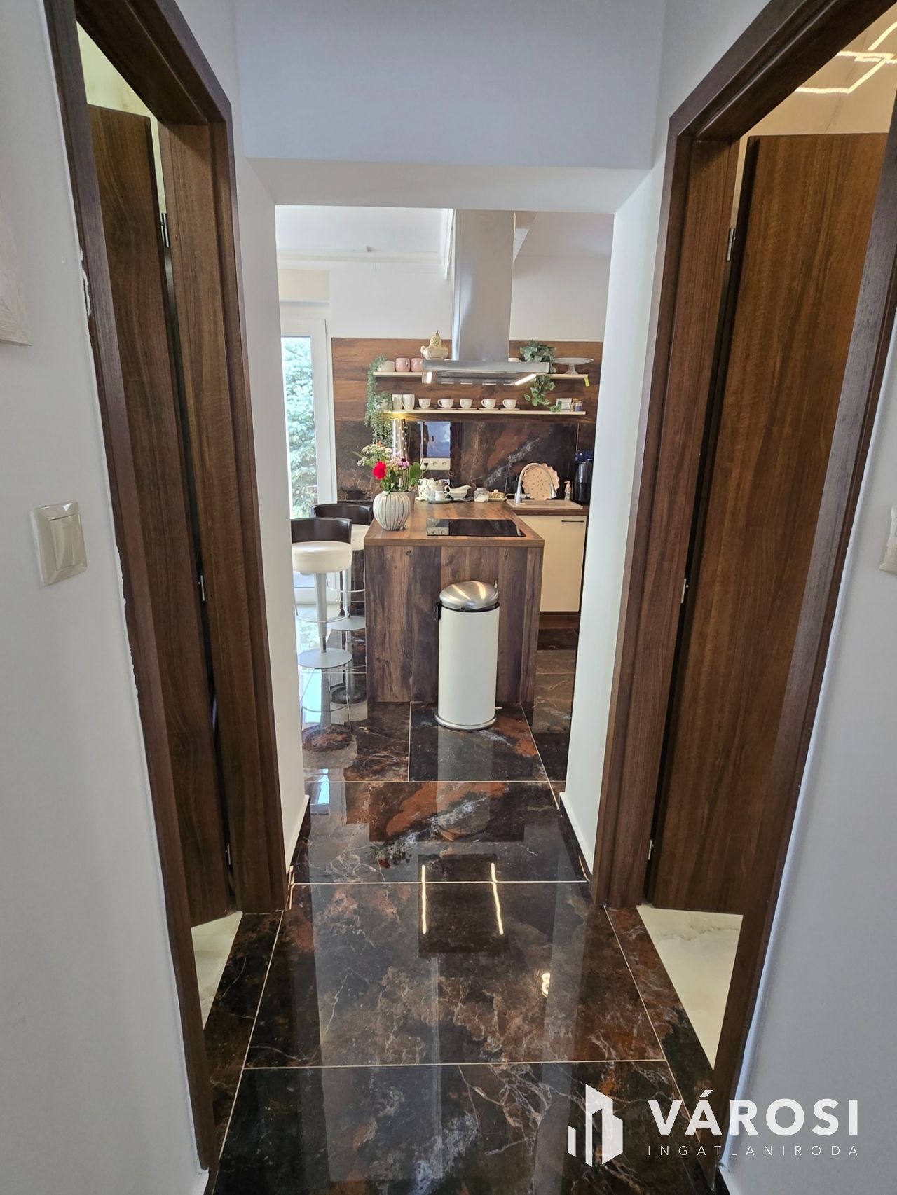 Az ingatlan belső tereit a letisztult elegancia és a funkcionalitás jellemzi. A világos, tágas nappali a közösségi élet központja, amelyhez harmonikusan kapcsolódik a prémium kialakítású konyha és étkező. A két hálószoba nyugodt életteret biztosít, míg a két fürdőszoba (egy fürdőkádas és egy zuhanyzó + wc-s) a mindennapi kényelmet szolgálja.