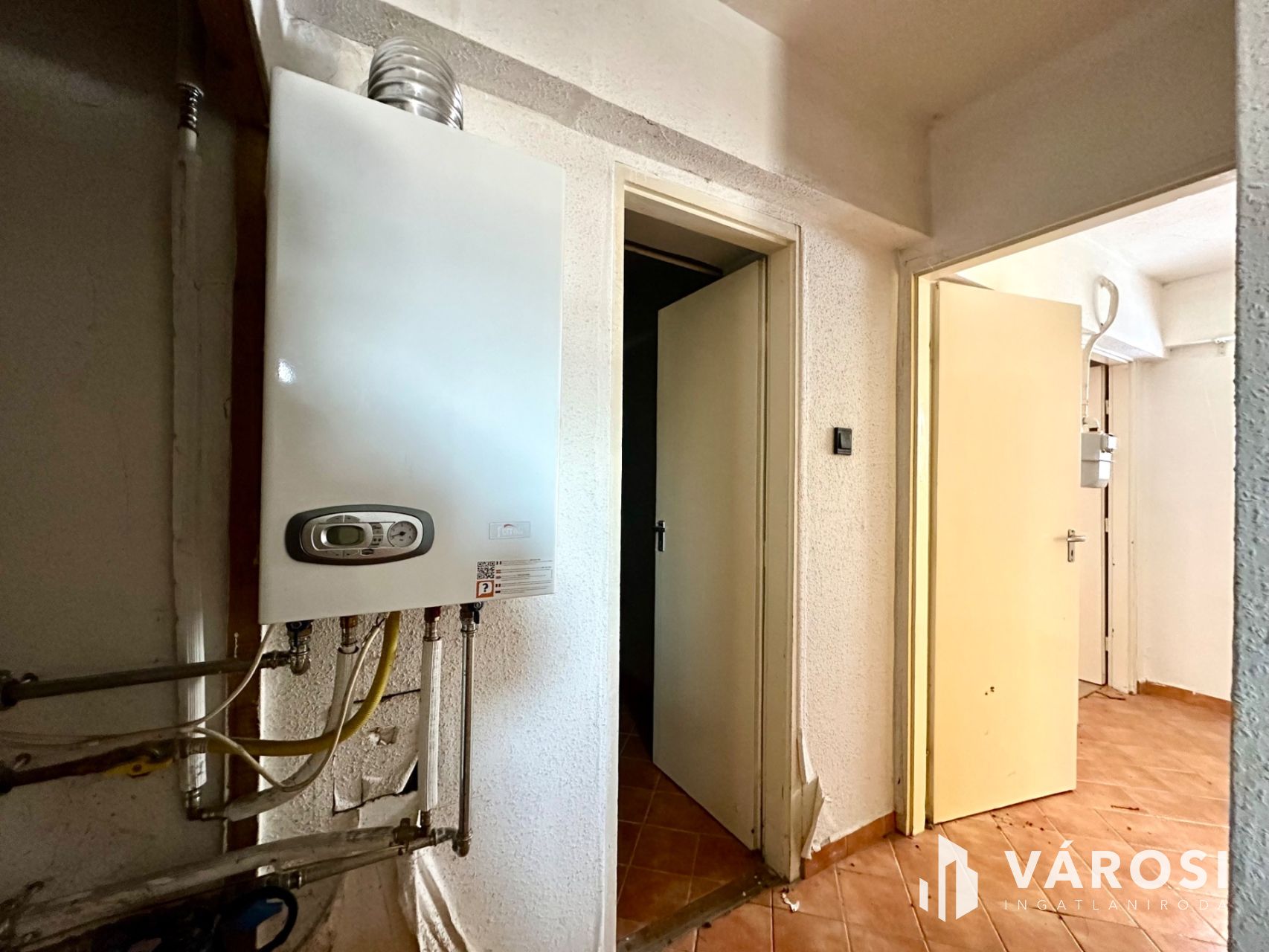A fűtést gáz cirkó kazán, a meleg víz ellátást villanybojler biztosítja.