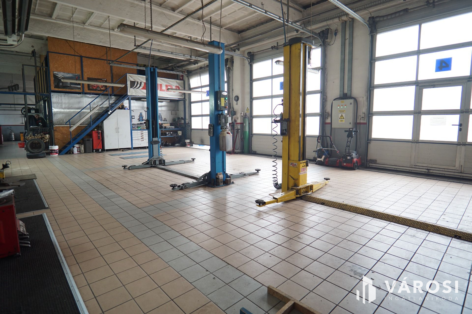 Szerviz: 4 külön beállóval rendelkező tégla épület, belső irodával, tárolóval, alkatrészmosóval, galériával valamint forgácsoló-javítórésszel. (Tulajdonos által használva).