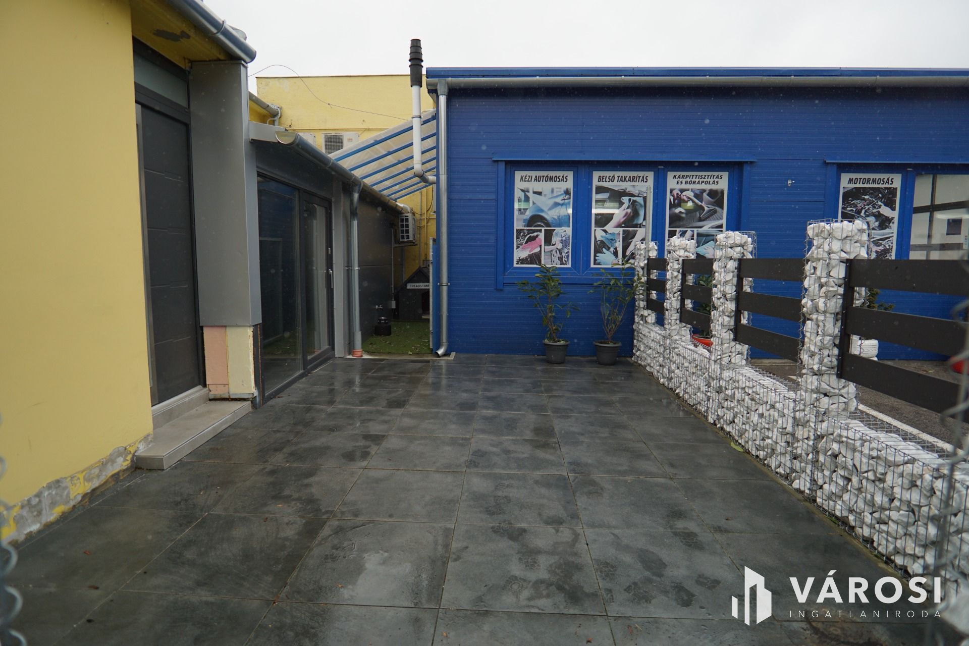 Kozmetika: 2 külön bejárattal rendelkező, tégla és könnyűszerkezetes épület, 2 gépkocsi azonos idejű takarításár alkalmas. (Jelenleg bérbe adva)