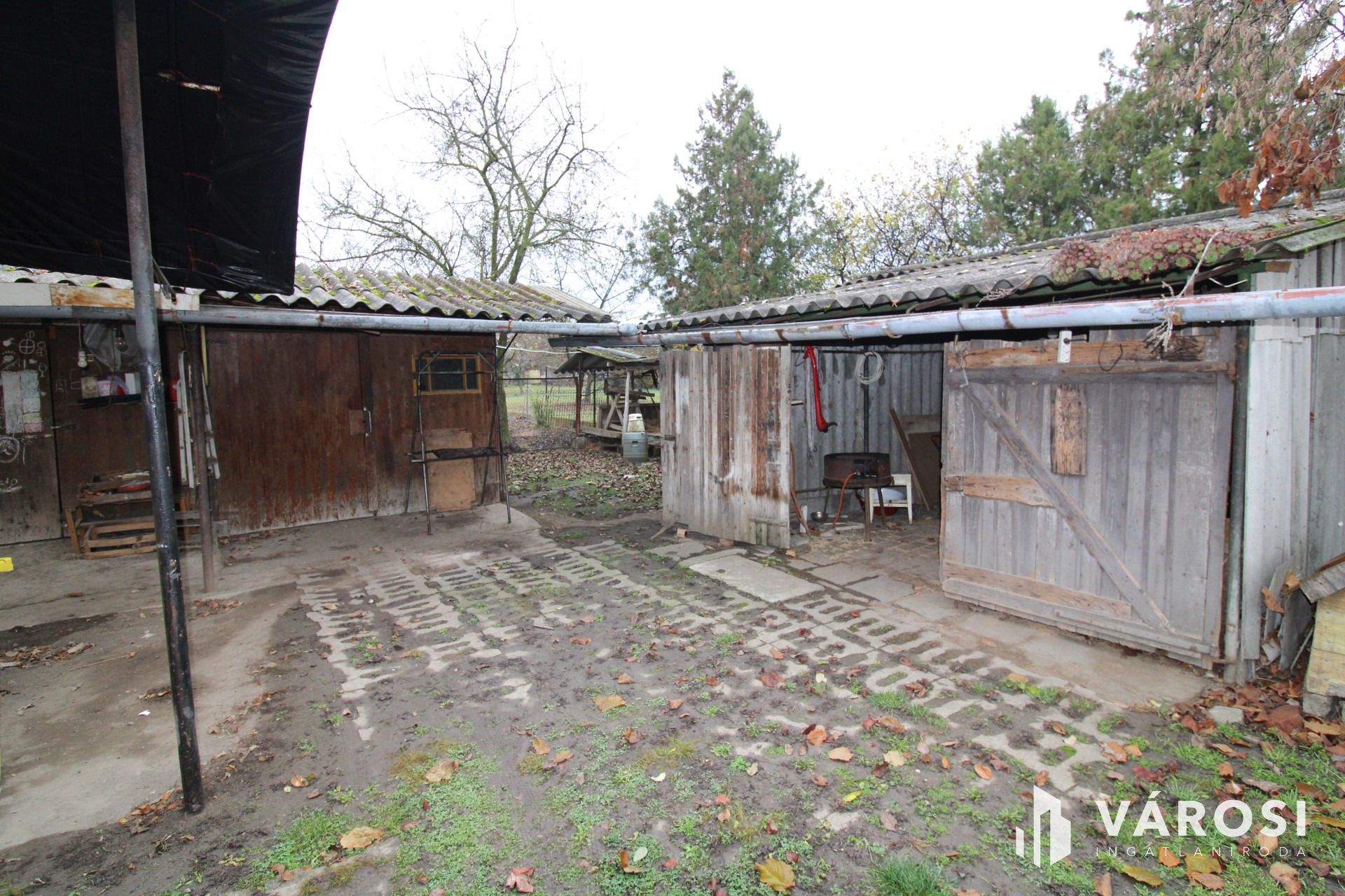 A telek teljesen körbe van kerítve, önálló udvarral rendelkezik, melyhez tartozik egy 35 m2-es melléképületi rész is ami fűtött, továbbá egy személygépkocsi tárolására alkalmas garázs is.