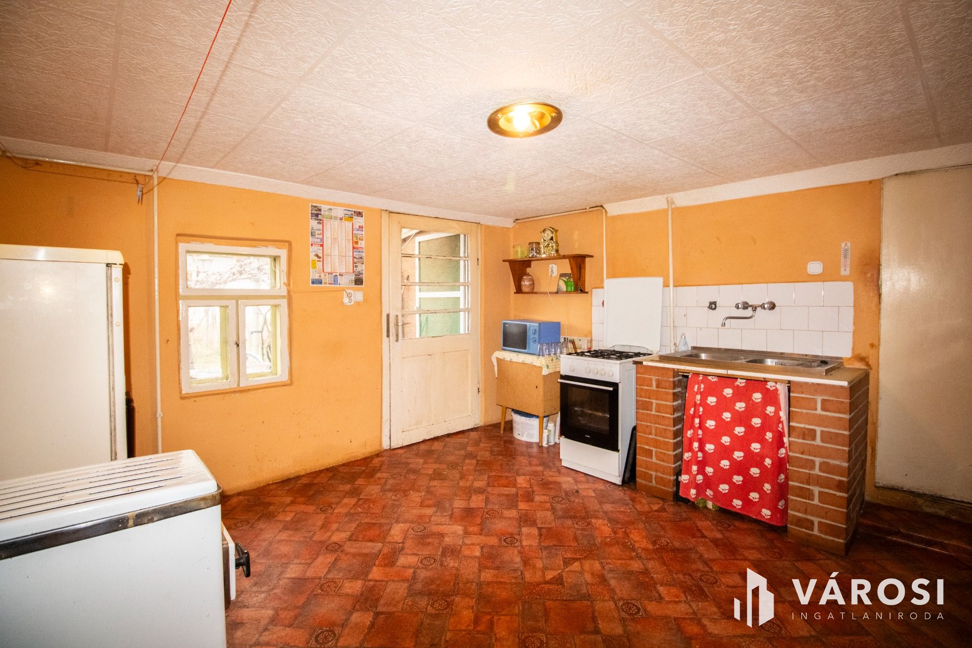 Az előszobából nyílik a 3 szoba. A kádas fürdőszoba villanybojlerrel felszerelt, a mellékhelyiség külön helyiségben található. A konyha-étkező tágas, innen egy második bejáraton keresztül a hátsó udvar is közvetlenül megközelíthető, ami a mindennapokban kifejezetten kényelmes megoldás. A kamra hasznos tárolóteret biztosít, a kb. 6 négyzetméteres fedett terasz pedig kellemes átmenetet képez a lakótér és a kert között.