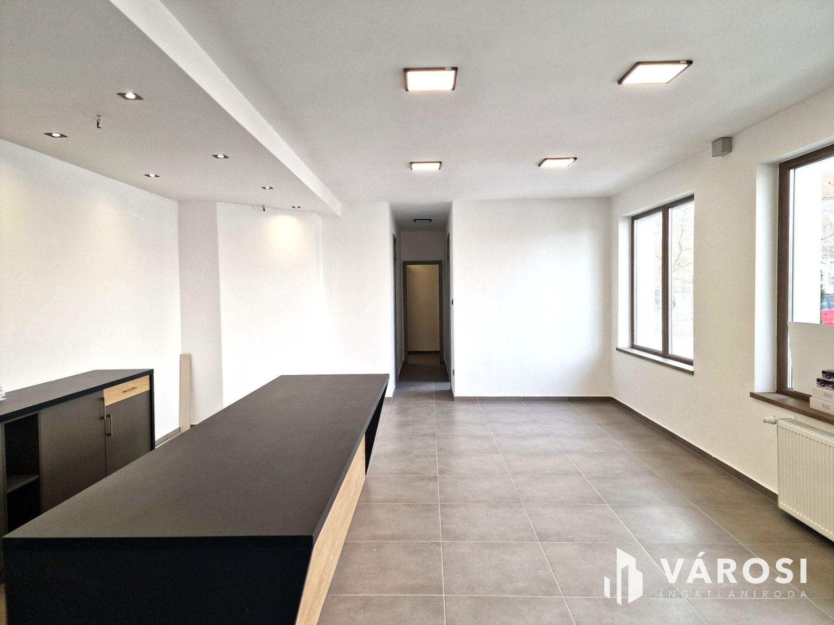 Földszinten: új állapotú, modern megjelenésű üzlethelyiség raktárakkal, irodákkal, szociális helyiségekkel.