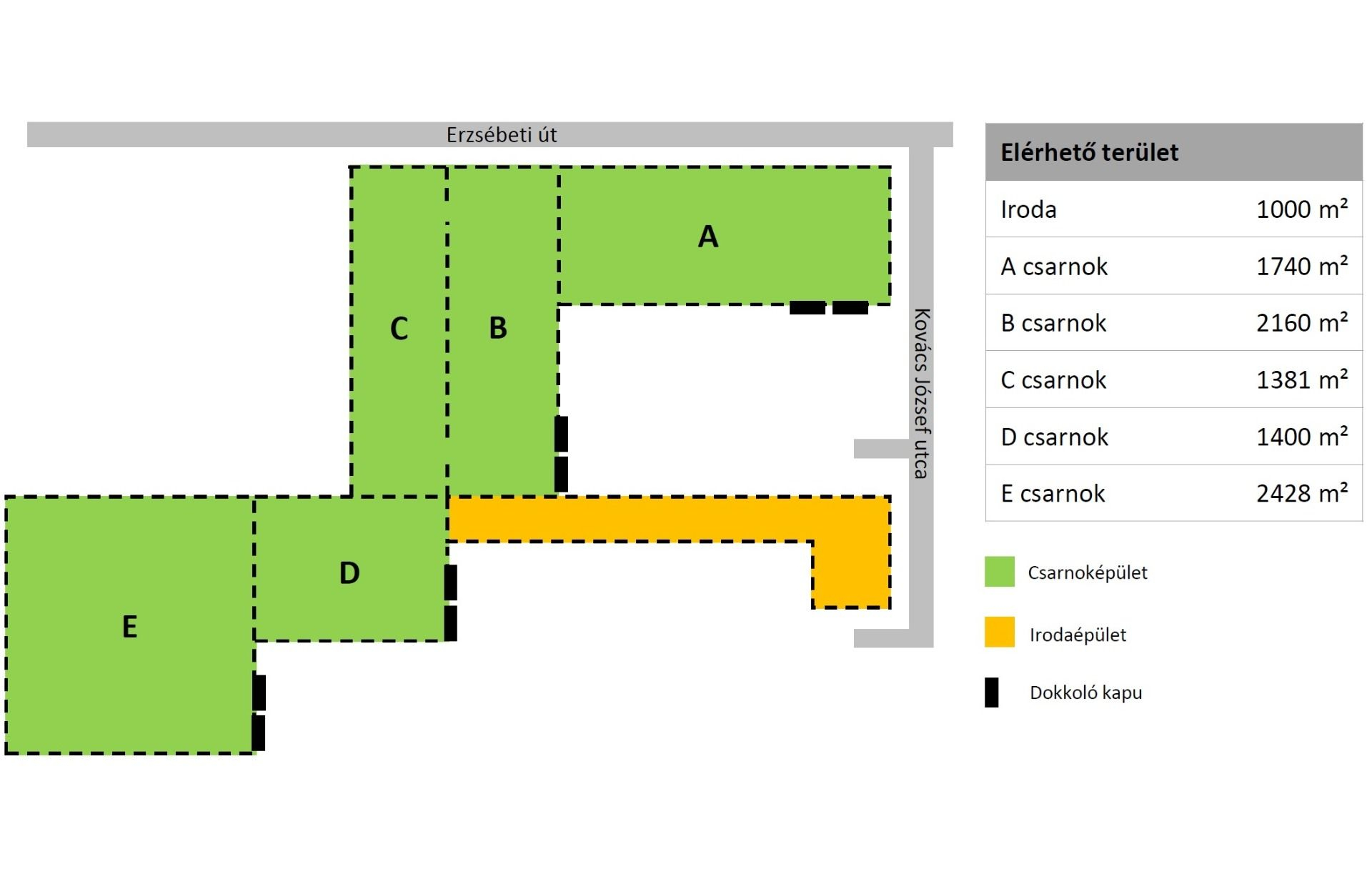 - E csarnok 2428 m²