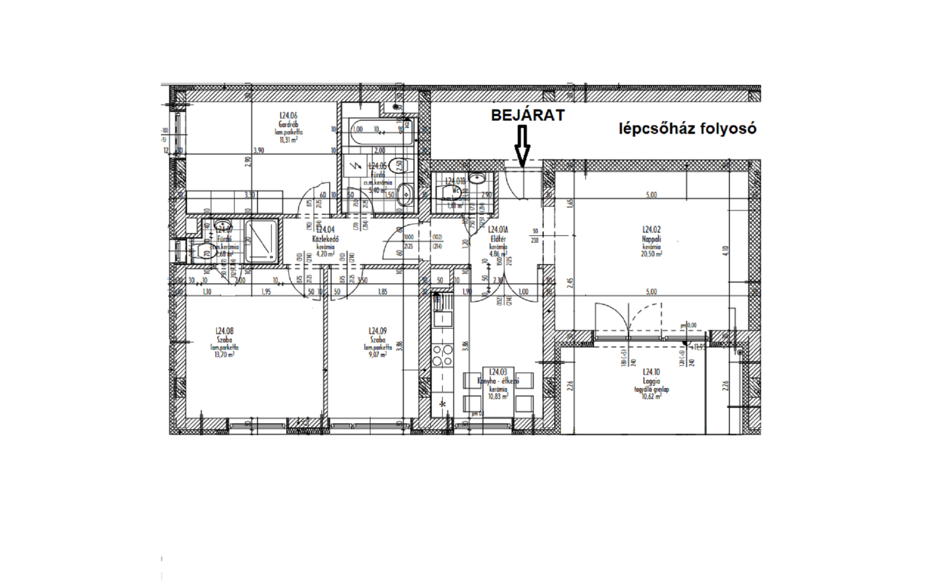 Elosztása szerint: nappali-konyha-étkező, 1 hálószoba hatalmas gardróbbal, zuhanyzós fürdőszobával, 1 szoba, fürdőszoba, wc, előtér, folyosó elrendezésű.