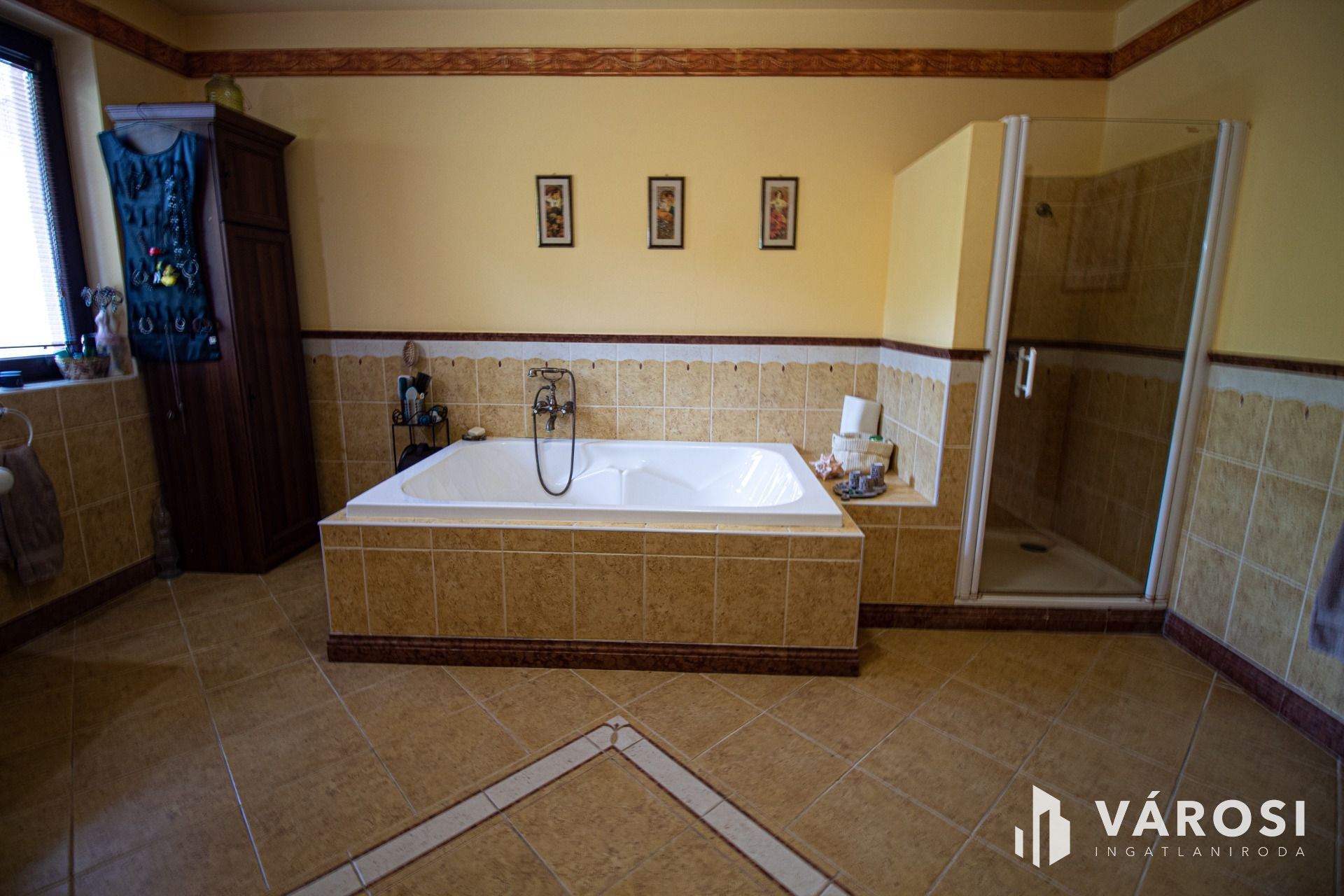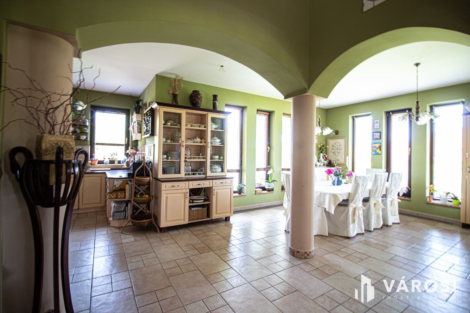 A tulajdonosok a megépítés során minden részletre odafigyeltek és a teljes építkezést felügyelték. A ház 38-as Phorotherm téglából épült, mely nemes vakolattal lett ellátva, a tető pedig Terrán héjazatot kapott. Az ingatlan belső kialakítását nézve a nagy terek dominálnak, hisz minden helyiség a nappaliból belátható. Az ingatlanba belépve egy szép, tágas előszobába érkezünk, mely térből már láthatóvá válik a belső szinteltolás is, ami szintén a mediterrán stílus jelképe. Ezen helyiségből továbbhaladva, tudjuk egy egyedi ívelt lépcsőn megközelíteni a felső szintet, amely 3 külön bejáratú szobából egy külön fürdőből és egy külön mellékhelyiségből áll. Mind 3 szobához teraszkapcsolat tartozik. Az alsó szintre visszatérve, található 2 külön bejáratú szoba, egy nagy légtérrel rendelkező nappali konyha étkező szintén teraszkapcsolatokkal. A ház tájolásának köszönhetően amely kelet-nyugat-dél a nap minden szakában a beltér fényáradatban úszik. A szigetelésről műanyag nyílászárok fa színben gondoskodnak. Az árnyékolást, exotikus gőzölt fa reluxák oldják meg. A meleg nyári napok lehűtésében, több beltéri klíma segédkezik. A hideg téli napok kifűtésében és a meleg víz előállításban, egy nagy teljesítményű cirkó kazán, használati melegvizes tartállyal összekapcsolva, radiátorokon és padlófűtésen keresztül gondoskodik, ezzel szolgálva a bent lakók kényelmét. A nappali hangulatát tovább fokozza, a központilag elhelyezett fa tüzelésű cserépkályha is amelynek melege, a fa ropogása szintén hozzájárul a lakrész téli nyugalmához. A ház belső hangulatát, a teraszra kilépve is érezhetjük, a felfuttatott szőlőnek és a szép igényes kertnek köszönhetően. A terasz adottságai nagyobb családi rendvények, partik megrendezésének tökéletes helyszíne. Gépkocsikkal való parkolás a dupla garázsban megoldott ami kapcsolatban van a belső lakrésszel is. A lakók biztonságára riasztó rendszer vigyáz, mely a nem kívánatos mozgás illetve ajtónyitás esetén azonnal jelez a távfelügyeleti cégnek.