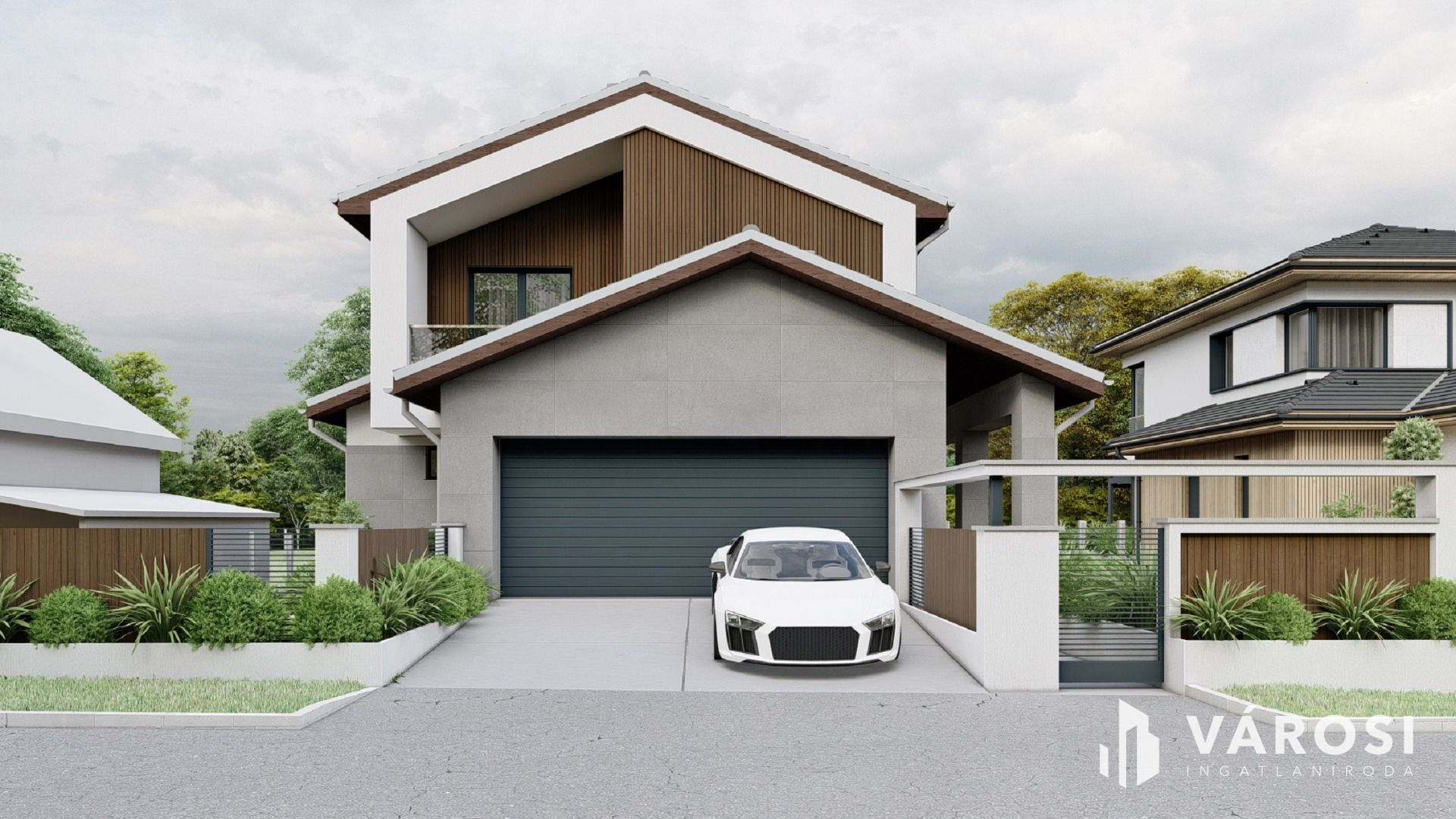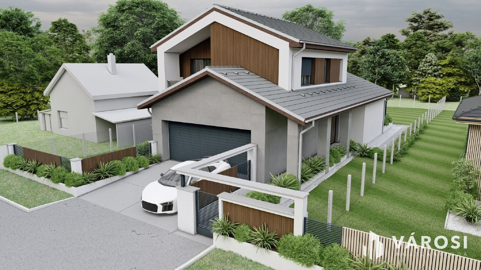 - külső részen: térburkolást a garázsbejáróban, ajtóban, termőföld feltöltést, kerítést