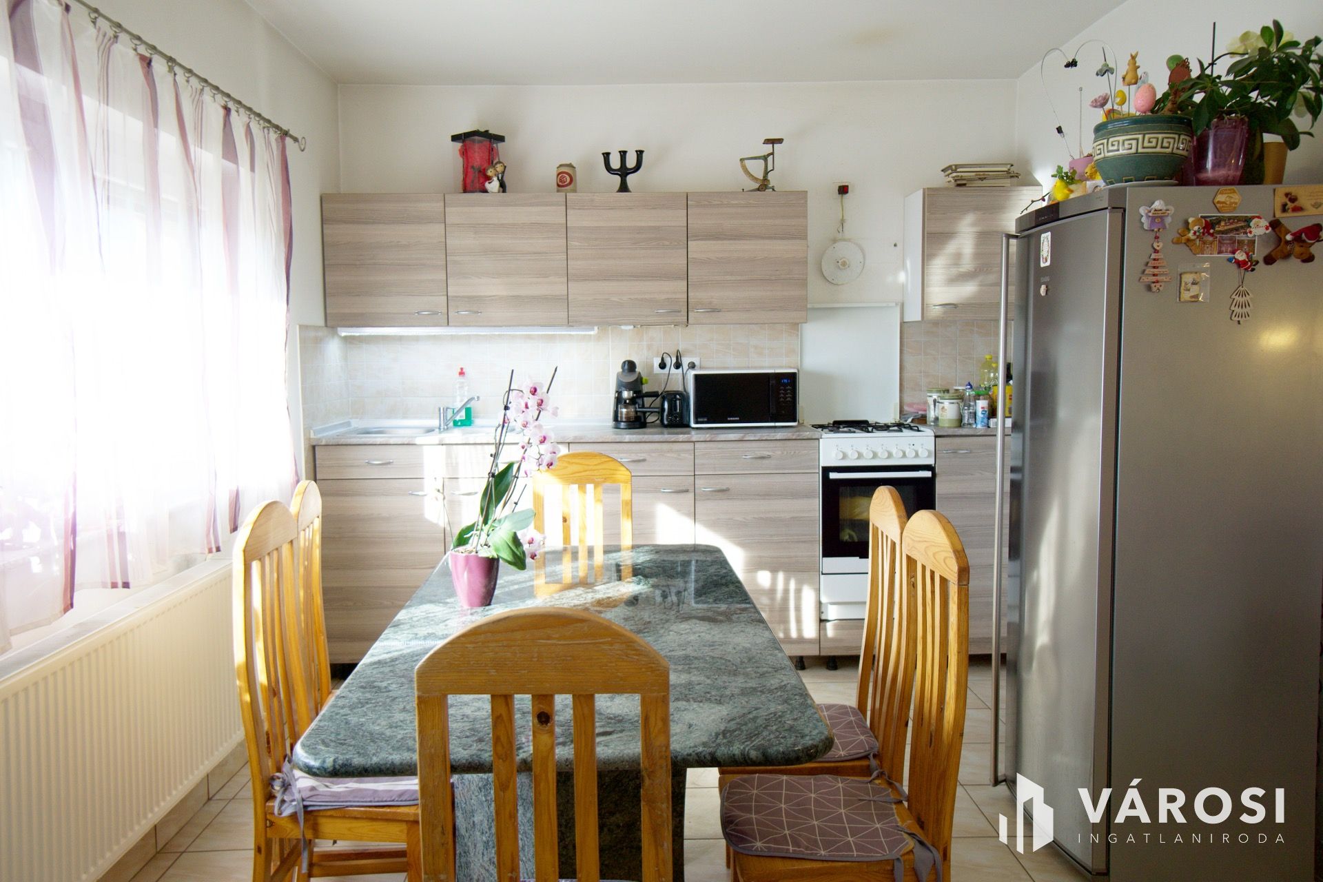 A csendes, családi házas utcában fekvő ingatlan nyugodt, zöld környezetet biztosít, ahol a pihenés és a természet közelsége a mindennapok része lehet. A tágas udvar gyermekeknek, kertészkedéshez vagy akár kisállatoknak is ideális.