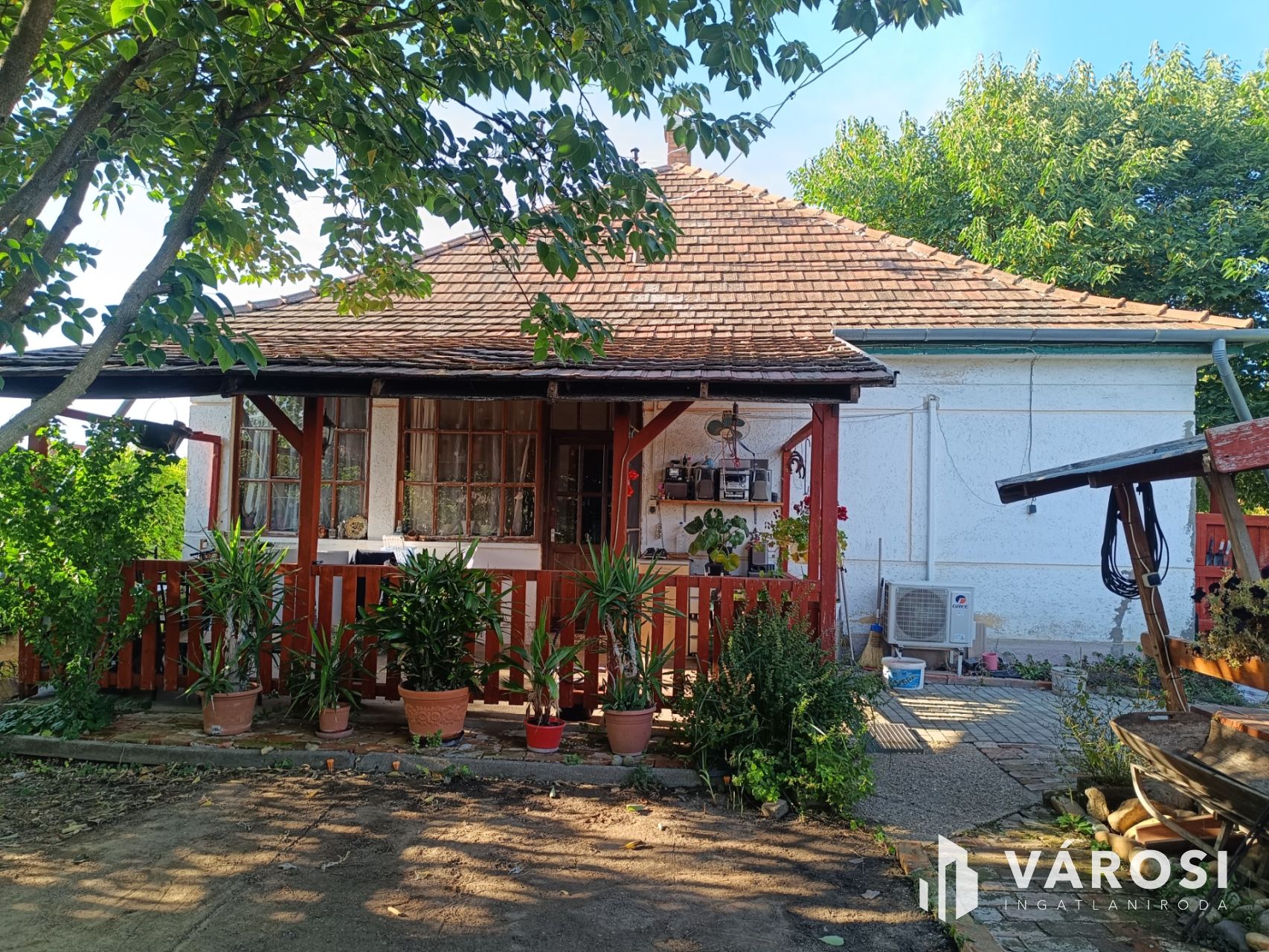 A képeken látható családi ház központ közeli elhelyezkedésű. Az udvarba lépve egy nagy diófa biztosít árnyékot, a gondozott kertben leanderek, kis előkert és egy különleges banánfa található. A házhoz fa kiülő és fedett terasz tartozik, amely ideális helyszíne a reggeli kávé elfogyasztásának.