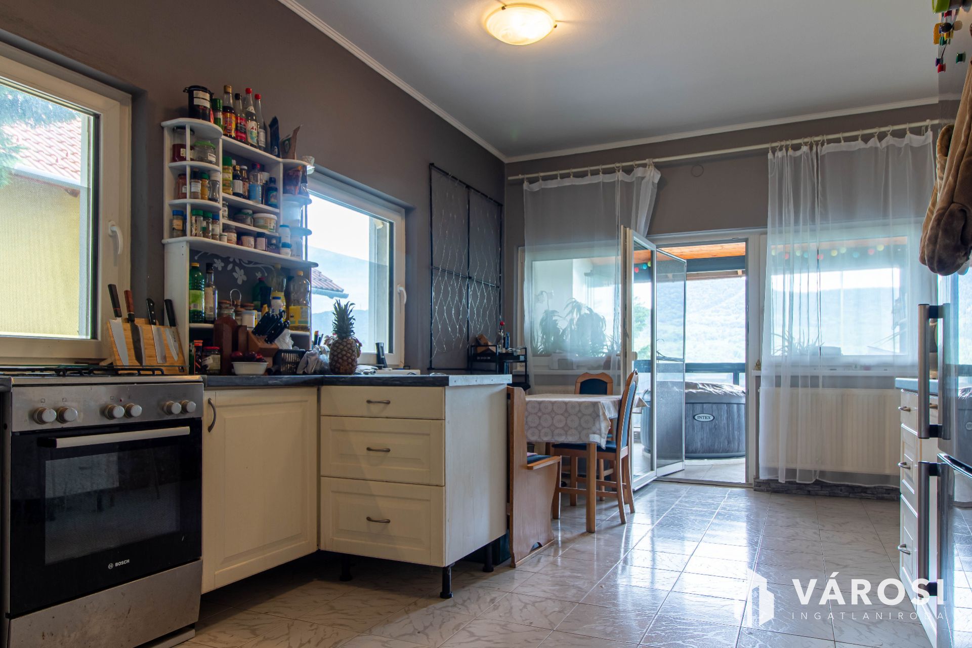 Az ingatlan háromszintes, erős téglafalakra épült 1986-ban, és máig is szerkezetileg kifogástalan állapotban áll. A ház minden szintjéről pazar panoráma tárul elénk – a völgyeken túli hegygerincek ilyenkor szinte belépnek az otthonba. A 231 négyzetméter élettér nemcsak kényelmet kínál, hanem szabadságot is: legyen szó több generáció együttéléséről vagy egy új lakrész kialakításáról, itt mindenre van lehetőség.
