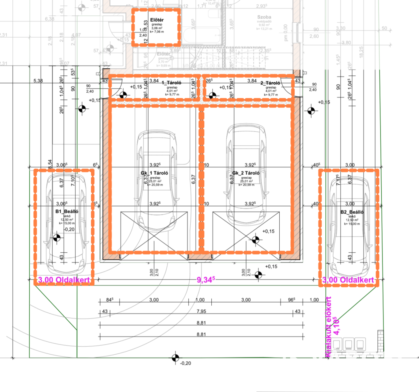 - A lakásokhoz garázs vásárolható 5,5 Mft, vagy gépkocsi beálló 1,5 Mft.