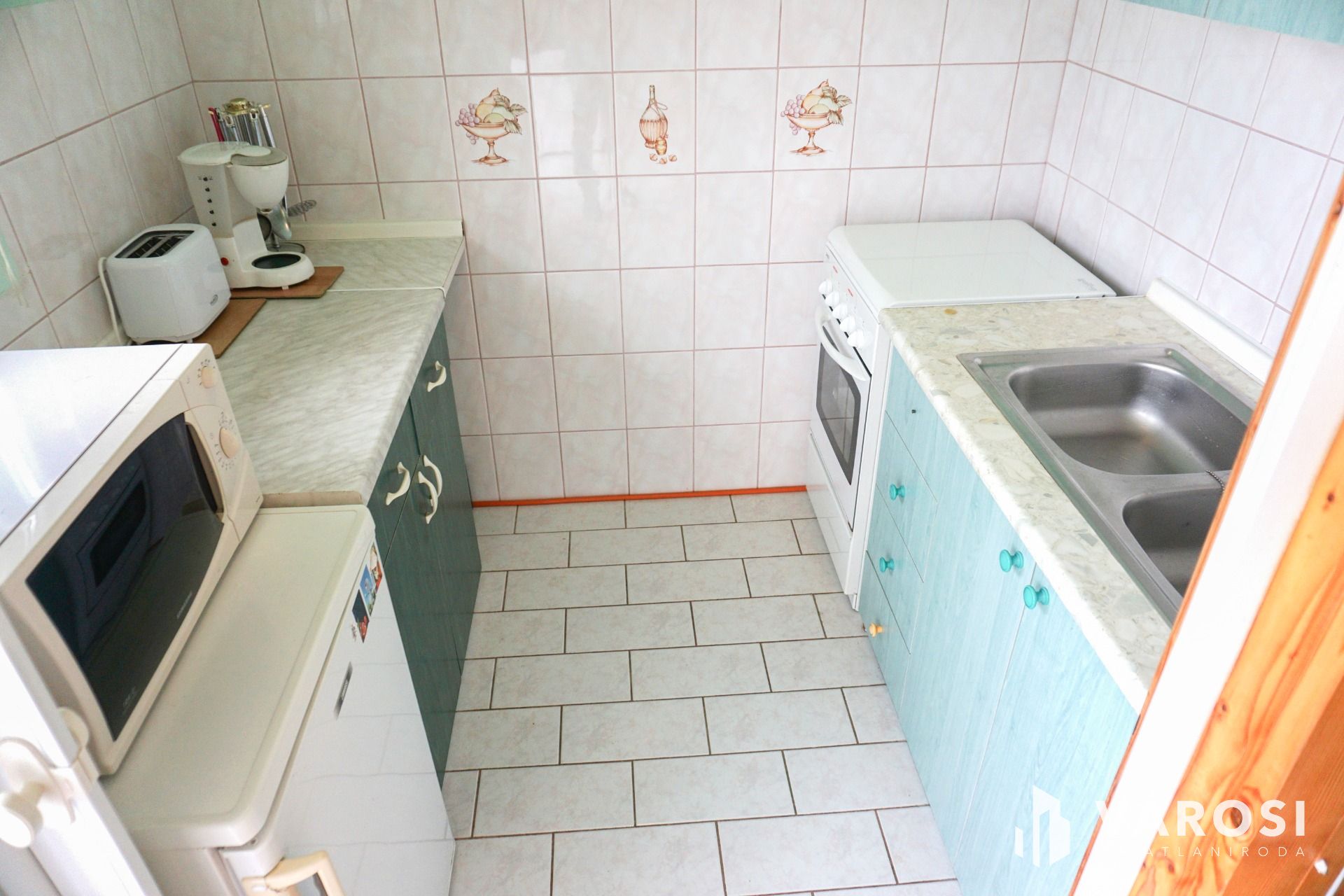 -pinceszinten: előtér, konyha, fürdőszoba, tároló és 2 lakószoba