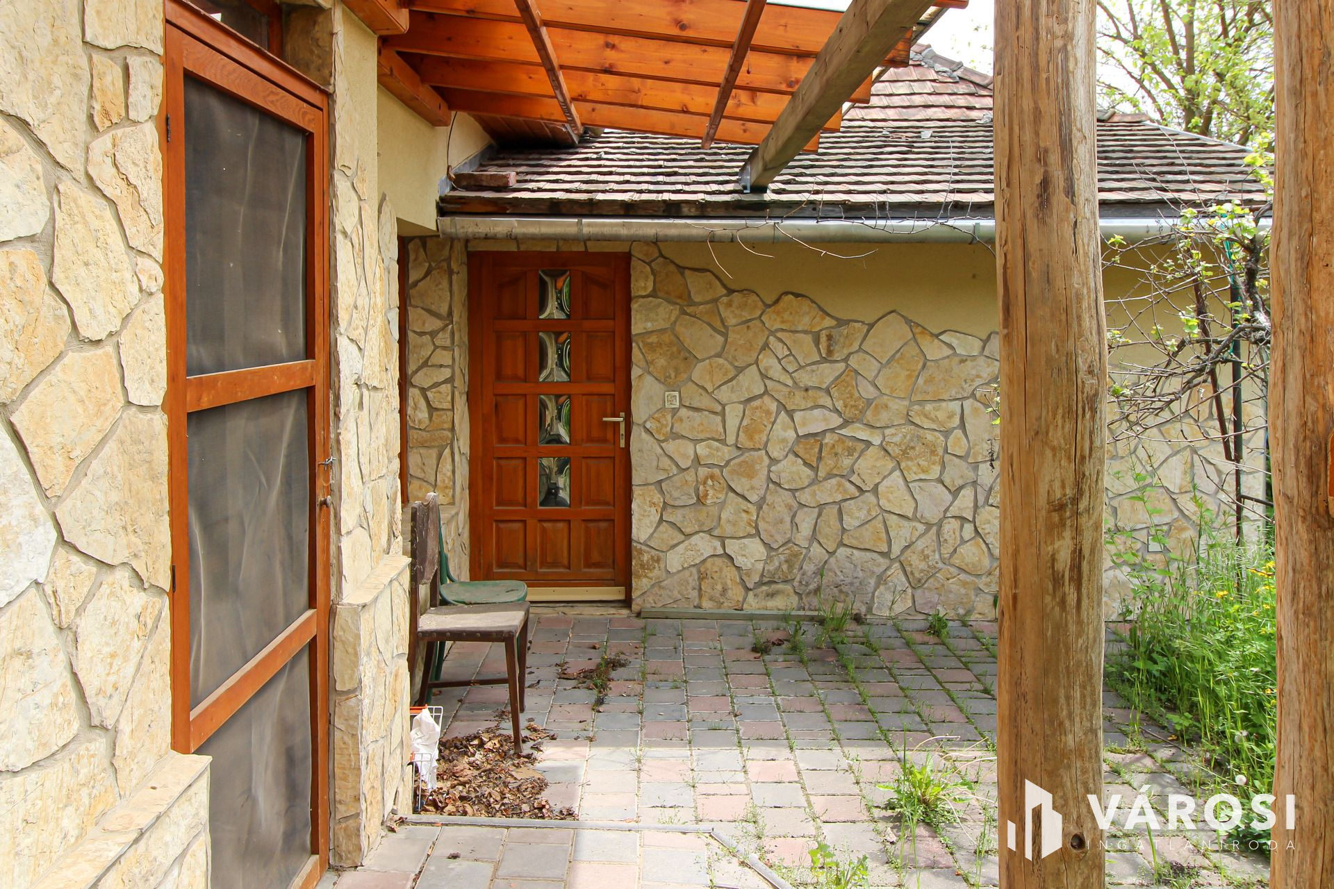 Az igazán egyedi hangulatú kialakítással rendelkező családi otthon, átlagos állapotú, kényelmes terek és kellemes, nyugodt környezet jellemzi. A nagy méretű telken egy gépkocsi tárolására alkalmas zárt garázs , illetve két gépkocsi beállására alkalmas fedett garázs, továbbá egy pince, ásott kút, és egy melléképület helyezkedik.