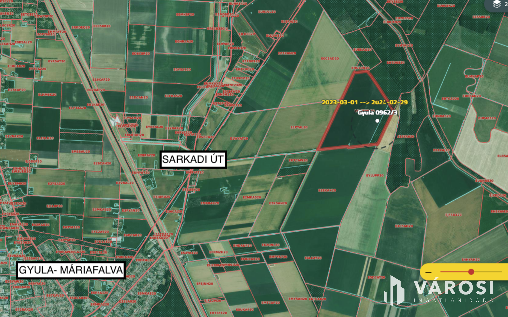 Gyula külterületén, a Sarkad út mellett, Oláh-Rétben eladó egy 2,02 ha alapterületű szántó besorolású termőföld. Az ingatlan teljes alapterülete 4,0468 ha, értéke 76 AK (melyből 0,4428 ha 10.41 AK és 3,6040 ha 65,59 AK), melynek az 1/2 tulajdoni hányada vásárolható meg. A termőföld folyamatosan művelve van, jelenleg is hosszútávú haszonbérleti szerződéssel rendelkezik a tulajdonos. A föld a Sarkadi útról bekötőúton keresztül megközelíthető. Befektetést keres, vagy gazdálkodni szeretne? Itt a tökéletes választás! Várom hívását!