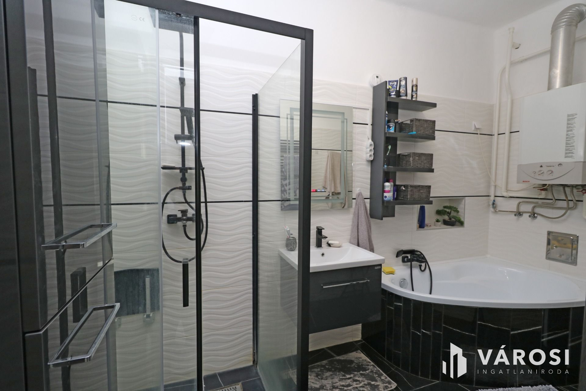- WC, fürdő járólapos itt zuhanykabin kapott helyet