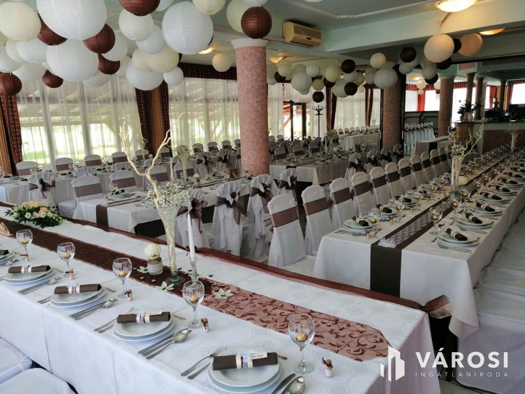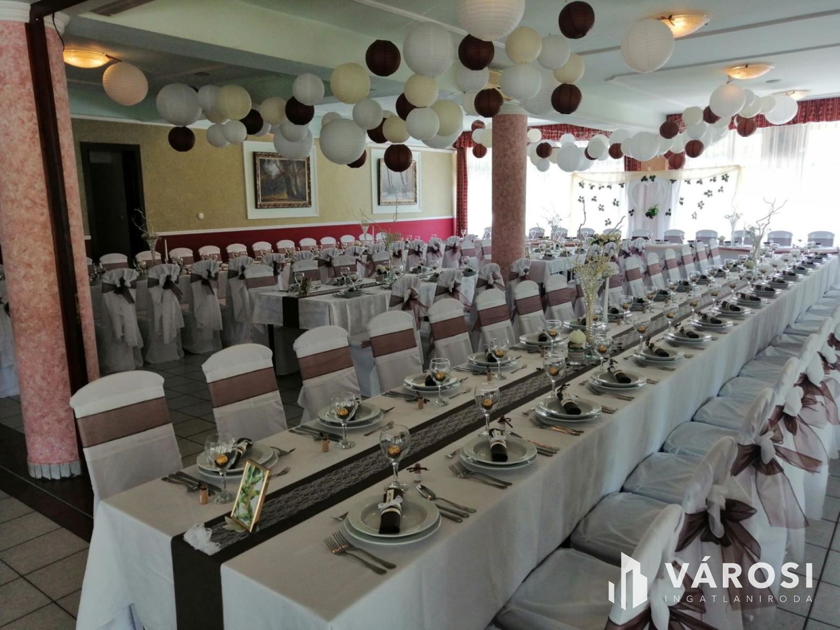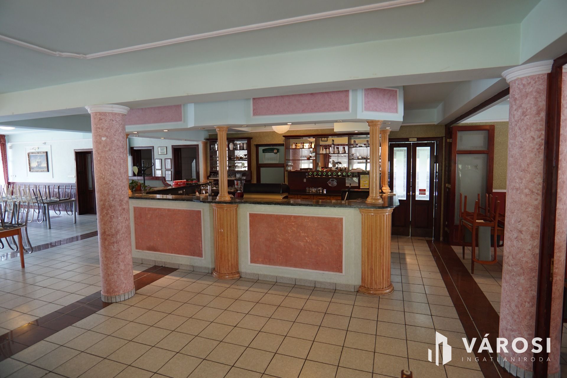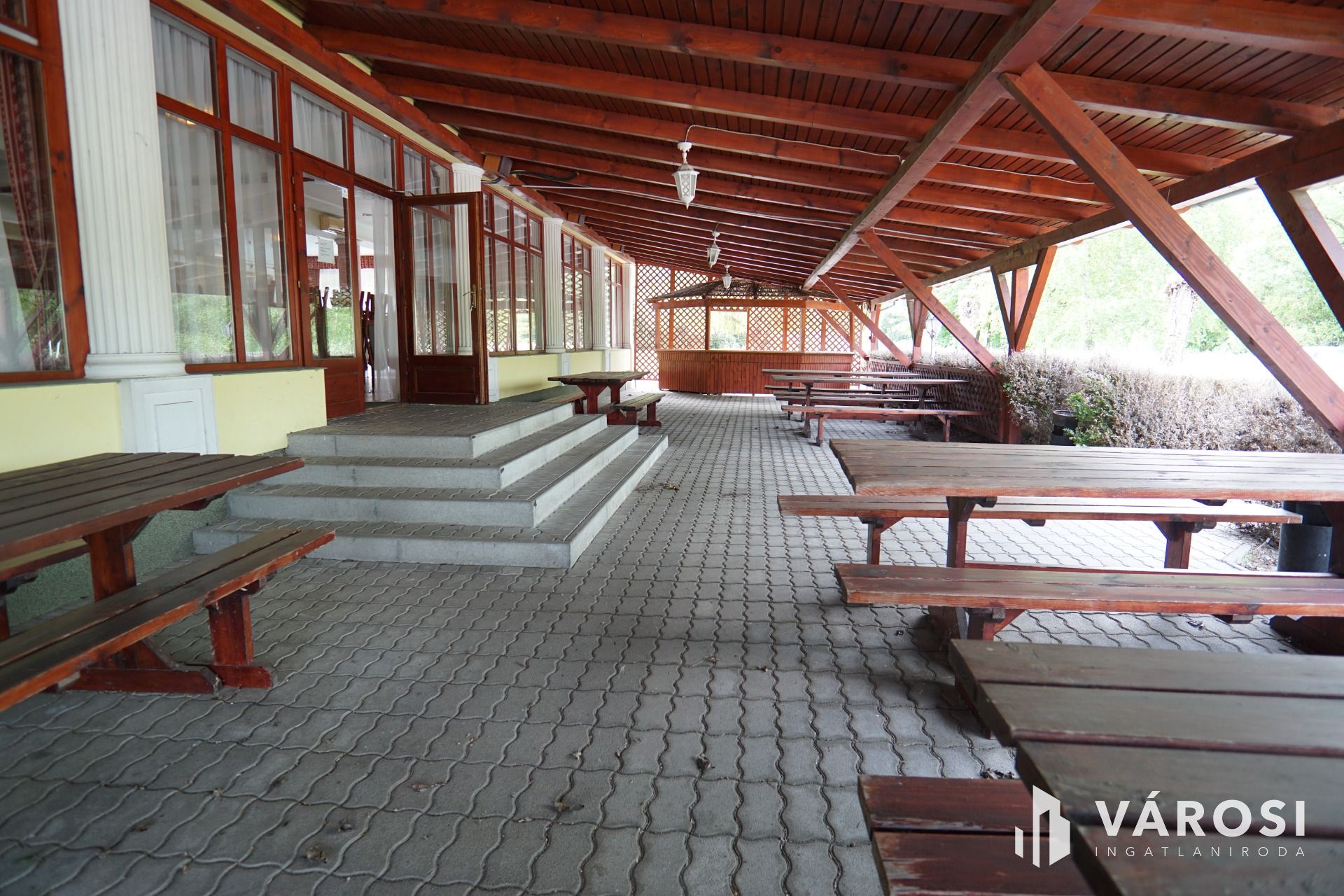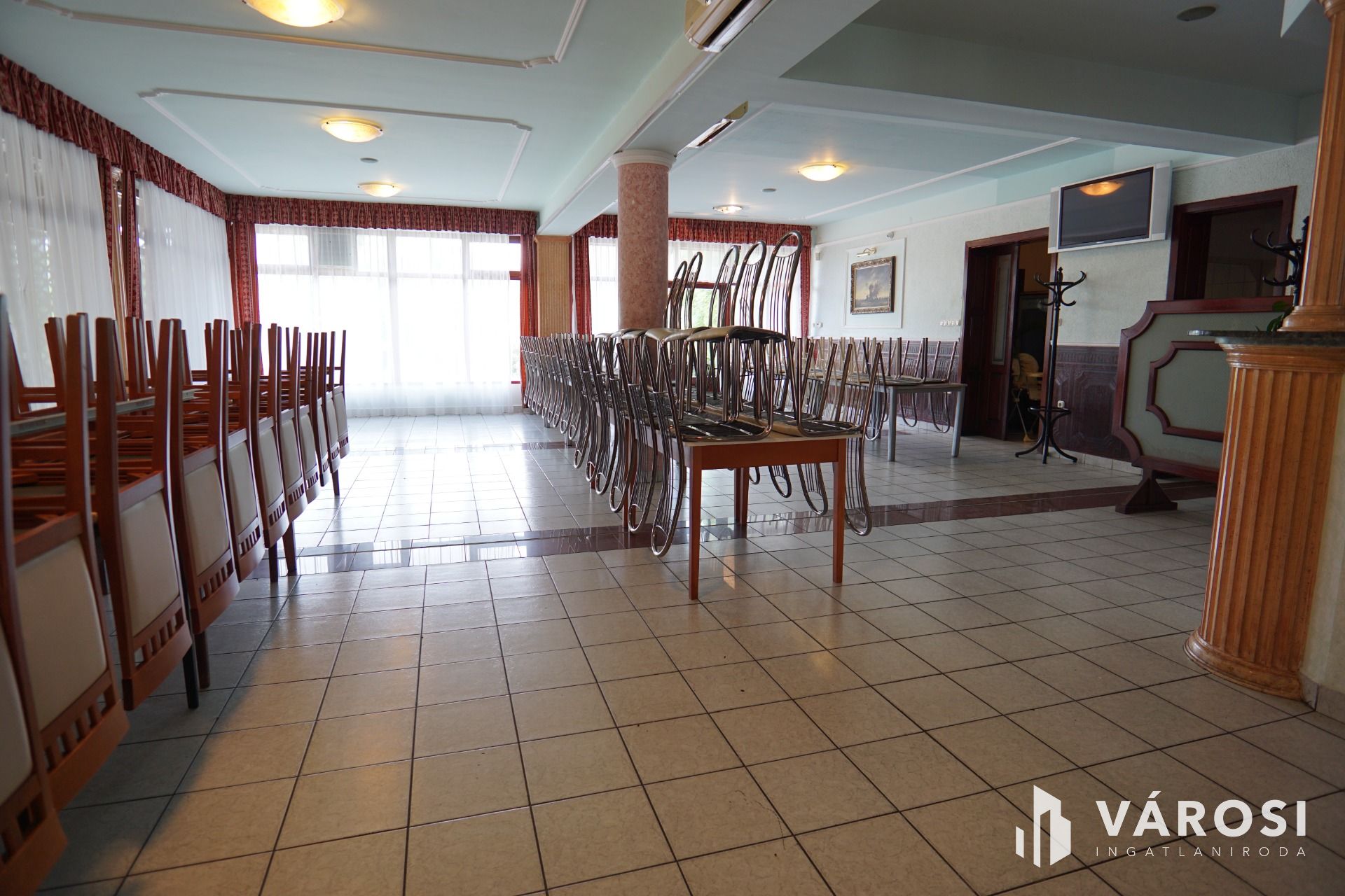 Nagykanizsától pár percre gépkocsival, közvetlen nagy forgalmú fő út szomszédságában vált eladóvá ez a lehetőségekkel teli vendéglátó egység. Funkcionálisan használható kisebb-nagyobb rendezvények lebonyolítására, (lakodalom, születésnapok, céges rendezvények..stb) valamint akár a lokációjának köszönhetően melegkonyhás étteremként és panzióként is üzemeltethető. Étterem rész befogadó képesége 180 fő, a terasz pedig további 100 fő vendég leültetésére alkalmas. A felső szinten található szobák pedig maximum 30 fő ott alvására lett kialakítva. Maga az épület beton alappal, tégla falazattal, cserép tetőfedéssel került megépítésre a 2000-es évben. Az ingatlanhoz érve léphetünk be egy közel 170m2-es fedett teraszra, ahonnan a főbejárati ajtón áthaladva érkezünk az épület központi részébe, mely 251m2-es nagyságának köszönhetően akár étterem akár rendezvényteremként is használható. Ezen légtérből megközelíthető meg a felső szint is ahol 10 külön bejáratú szoba saját vizesblokkal került kialakításra, valamint még ezen szinten háztartási helység és iroda is megtalálható. Az ingatlan teljesen klimatizált. (alsó szint, felső szint minden szoba külön-külön). Az alsó szintre visszatérve található még egy női és egy férfi illemhelység, egy nagy konyha a hozzá tartozó helységekkel és tárólokkal, hűtőházzal, személyzeti öltözővel. Az éttermi részen a dolgozok munkáját segíti, egy igényes nagy italpultrendszer is melyhez kis ablakon keresztük konyhakapcsolat is tartozik. Az ingatlan fűtése egyedi gáz cirkó, mely radiátorok és padlófűtésen keresztül szolgáltatja a meleget.
