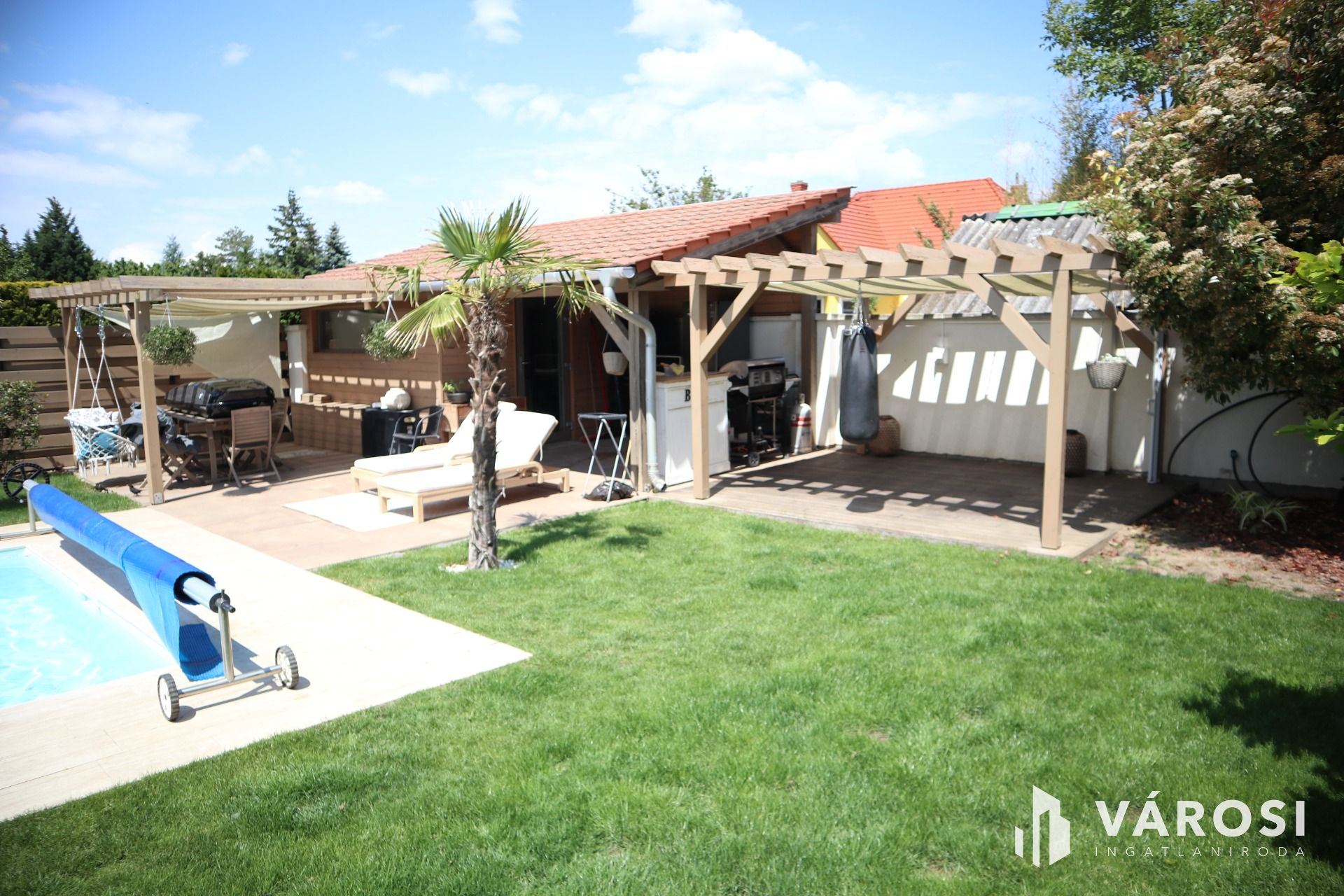 - parkosított udvar + grillező + kert világítás